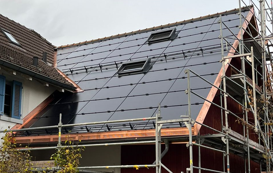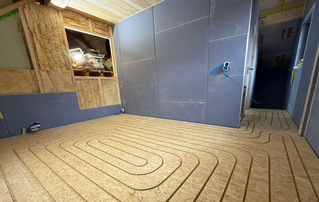 Energetische Modernisierung eines Holzhauses mit Solaranlage, Innenausbau und Dachfenstern.