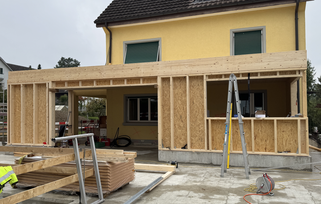 Ersatzneubau MFH mit sichtbarer Tragkonstruktion.